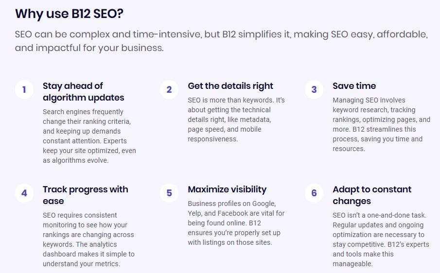 - Aside from the design and content draft, B12 also equips you with the built-in tools you need to grow your practice. From SEO features that improve your search engine rankings to online scheduling for a discovery call, B12 covers the essentials for visibility and client engagement. You’ll also get payments, invoicing, client intake forms, and email sign-ups to grow your list, all included in one platform.
