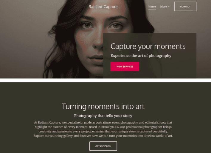 Why it works: Visitors immediately get an idea of the photographer’s style and quality, which helps them make faster decisions. The visual-focused approach matches how clients shop for photography services.