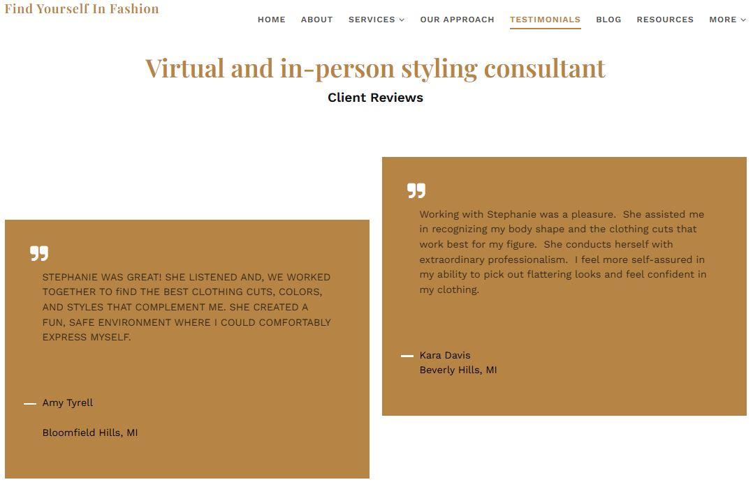Here’s one of B12’s clients, Find Yourself in Fashion’s testimonial page.