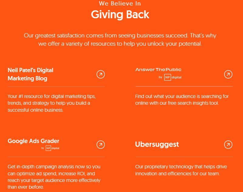 For instance, if you look at Neil Patel’s website, neilpatel.com, you can see his homepage leads with clear positioning and strong, benefit-first copy. The hero line for his marketing blog states: “Your #1 resource for digital marketing tips, trends, and strategy…” The clean, conversion-friendly layout further enhances its professional look and makes it easy for visitors to engage.