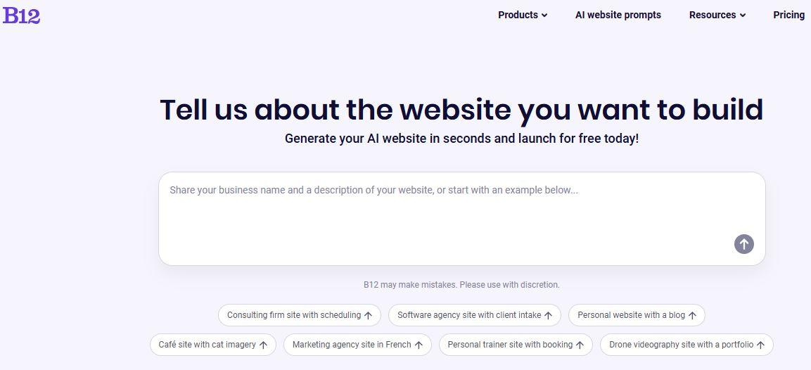 B12 is one of the few builders that doesn’t just throw a pretty layout at you. It creates a full AI-generated landing page, complete with design, copy, and imagery, from a single prompt. Think of it as having a designer, writer, and developer in your back pocket, minus the scheduling headache.