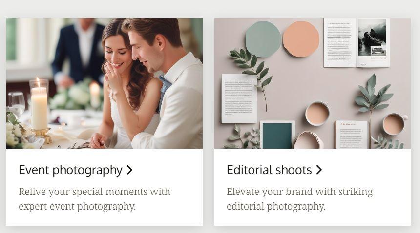 Crisp sans-serif fonts, generous margins, and restrained use of color, the site lets each image breathe while the text subtly reinforces mood and tone. This minimalist design highlights what matters most: the artistry.