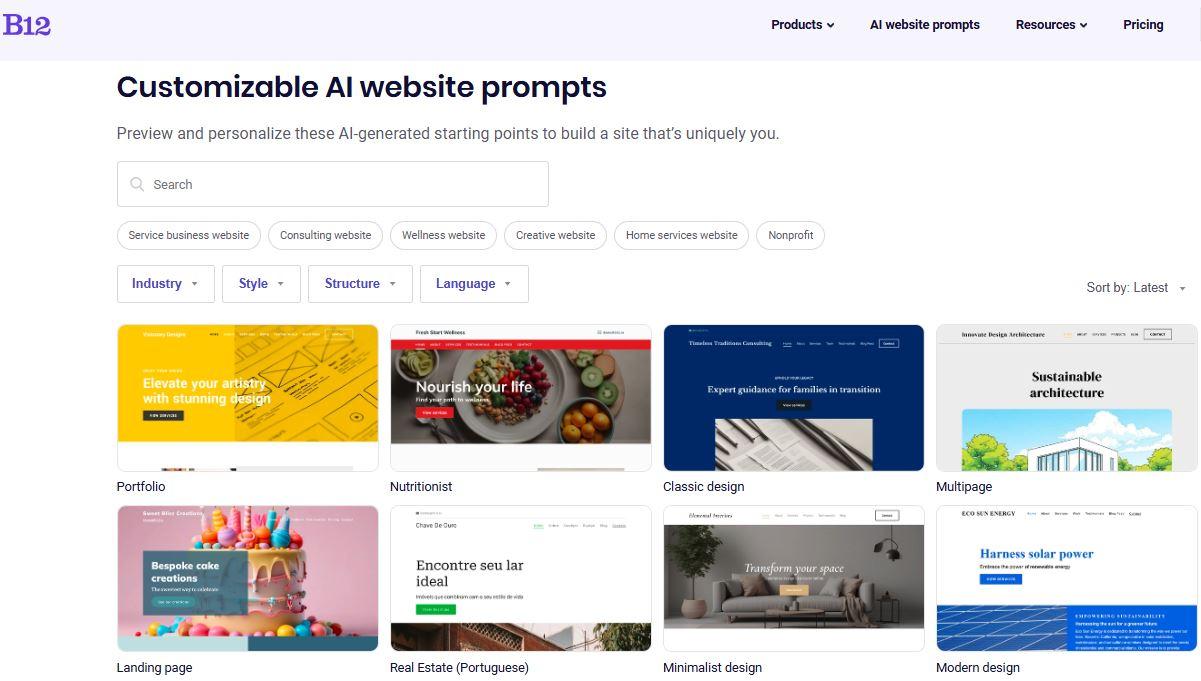 Why it stands out: B12 balances automation and human touch, offering complete control over your custom site while maintaining speed and professional design quality.