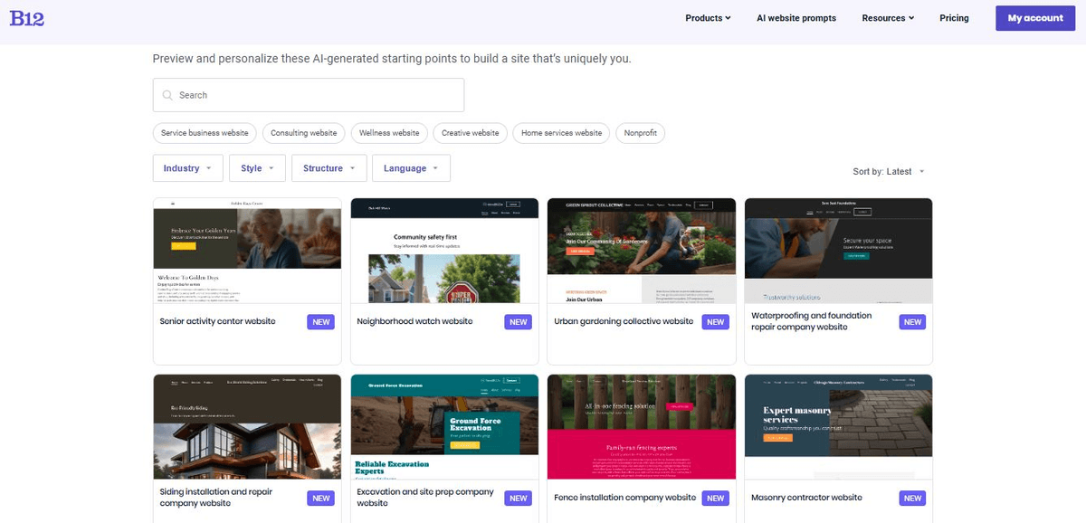 - AI website builders can generate an entire website with industry-specific structure and copy in minutes, saving you hours of second-guessing. B12 has a prompt gallery and professional coaching website templates that you can customize until your brand identity feels exactly right.