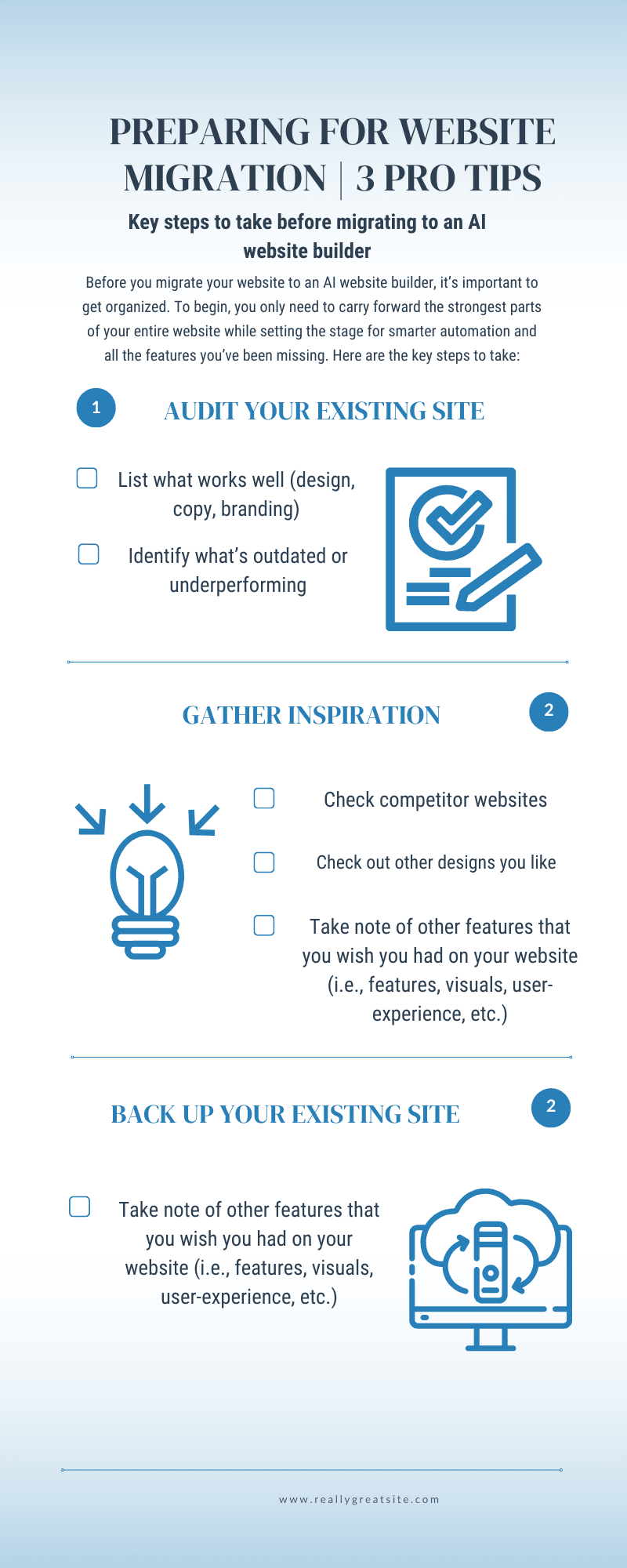 Step 1: Audit your existing site