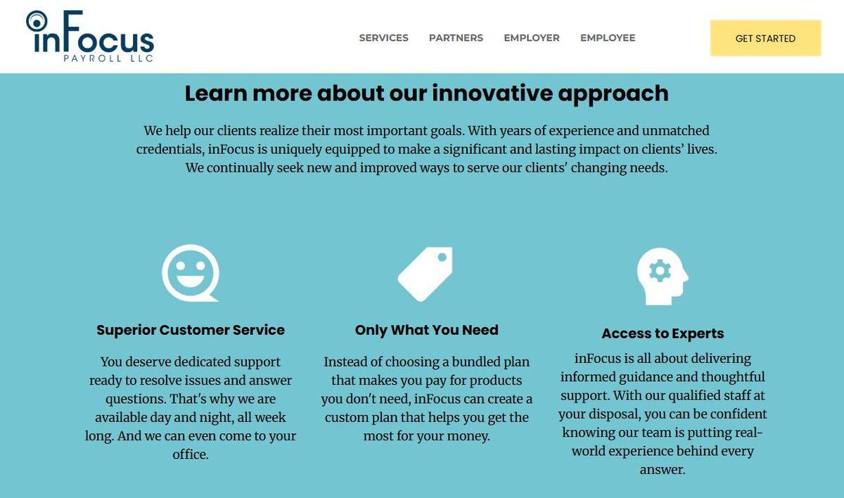InFocus Payroll migrated its outdated site to B12. Their old platform made updates a headache, and the design didn’t reflect their professionalism. With B12’s AI-powered website builder, they launched a fully functional website that matched their brand and offered a better client experience. Instead of relying on heavy technical skills, they could easily bring client ideas to life through an intuitive design process.