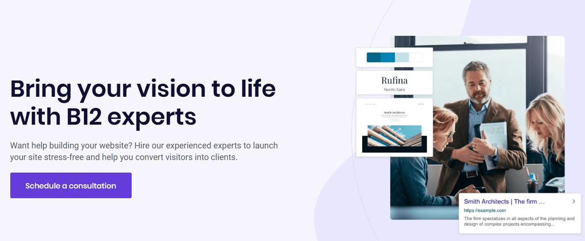 You can use the technical and creative services of B12’s team of experts to polish and double-check your mortgage website. With their help, they can ensure your site maintains its branding while communicating trust, professionalism, and compliance before launch. It’s like having an editor who knows the mortgage industry inside out.