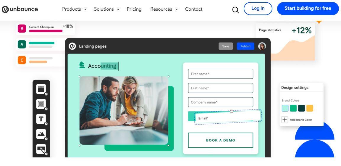 Unbounce has been a classic PPC landing page tool for years, and the AI upgrade makes it an even stronger performer. Its Smart Builder combines AI-generated copy with conversion rate optimization (CRO)-focused templates and automated A/B testing.
