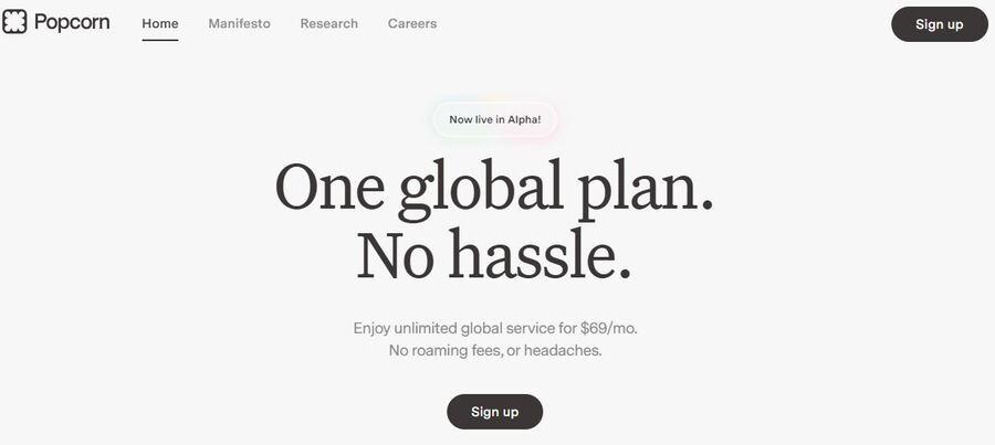 Popcorn’s website features a complete product overview, including pricing, FAQs, and CTAs all on one screen.