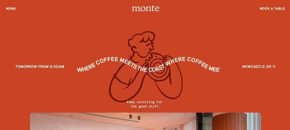 Australian restaurant Monte showcases a one-pager complete with hero image, menu highlights, map link integration, and reservation CTA.