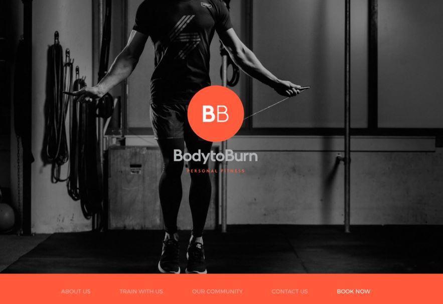 Body to Burn’s single-page website guides visitors to its About page, followed by the different training options and classes, and the contact page for booking.